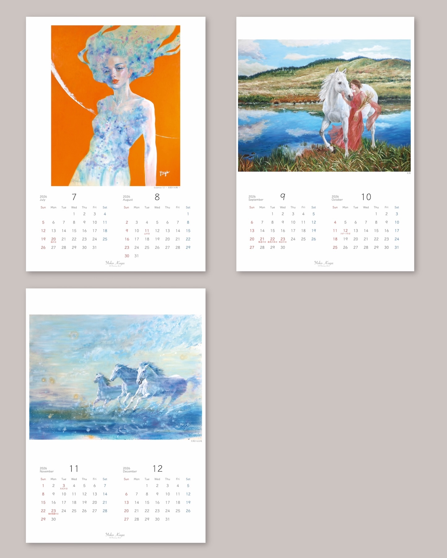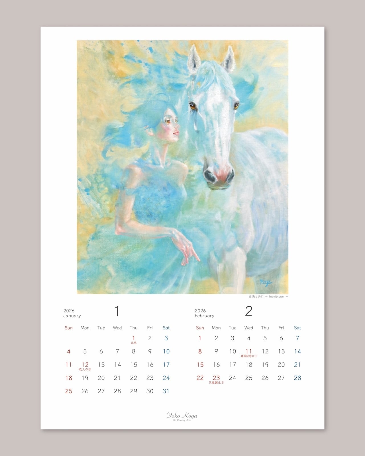 古賀陽子の2026年オリジナル壁掛けカレンダー B4サイズです。